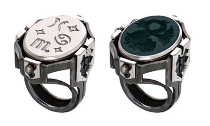 Elie Top Lady of the Lake Sketch Elie Top Ring Lady of the Lake Collection Tops use of mixed metals with distressed finishes make it hard to distinguish whether pieces are new or old. 7200 Onyx Scaphandre Ring. Yellow gold sphere rotating on a distressed silver structure and opening on an Akoya pearl itself surrounded.